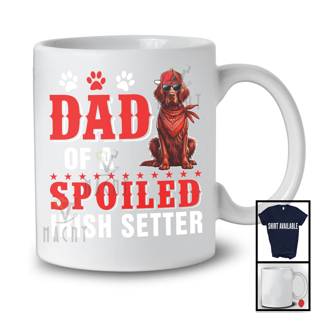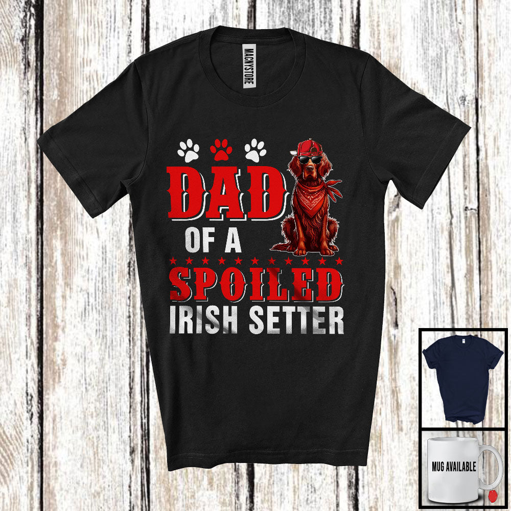 Dad Of A Spoiled Irish Setter, Awesome Father's Day Puppy Sunglasses, Matching Family Group T-Shirt. This cotton t-shirt is a durable staple product with a classic fit. One of the most popular items, it has a relaxed style made for everyday and casual wear.