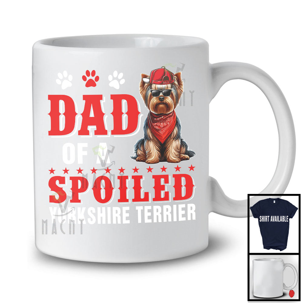 • Dad Of A Spoiled Yorkshire Terrier, Awesome Father's Day Puppy Sunglasses, Family T-Shirt. This cotton t-shirt is a durable staple product with a classic fit. One of the most popular items, it has a relaxed style made for everyday and casual wear.