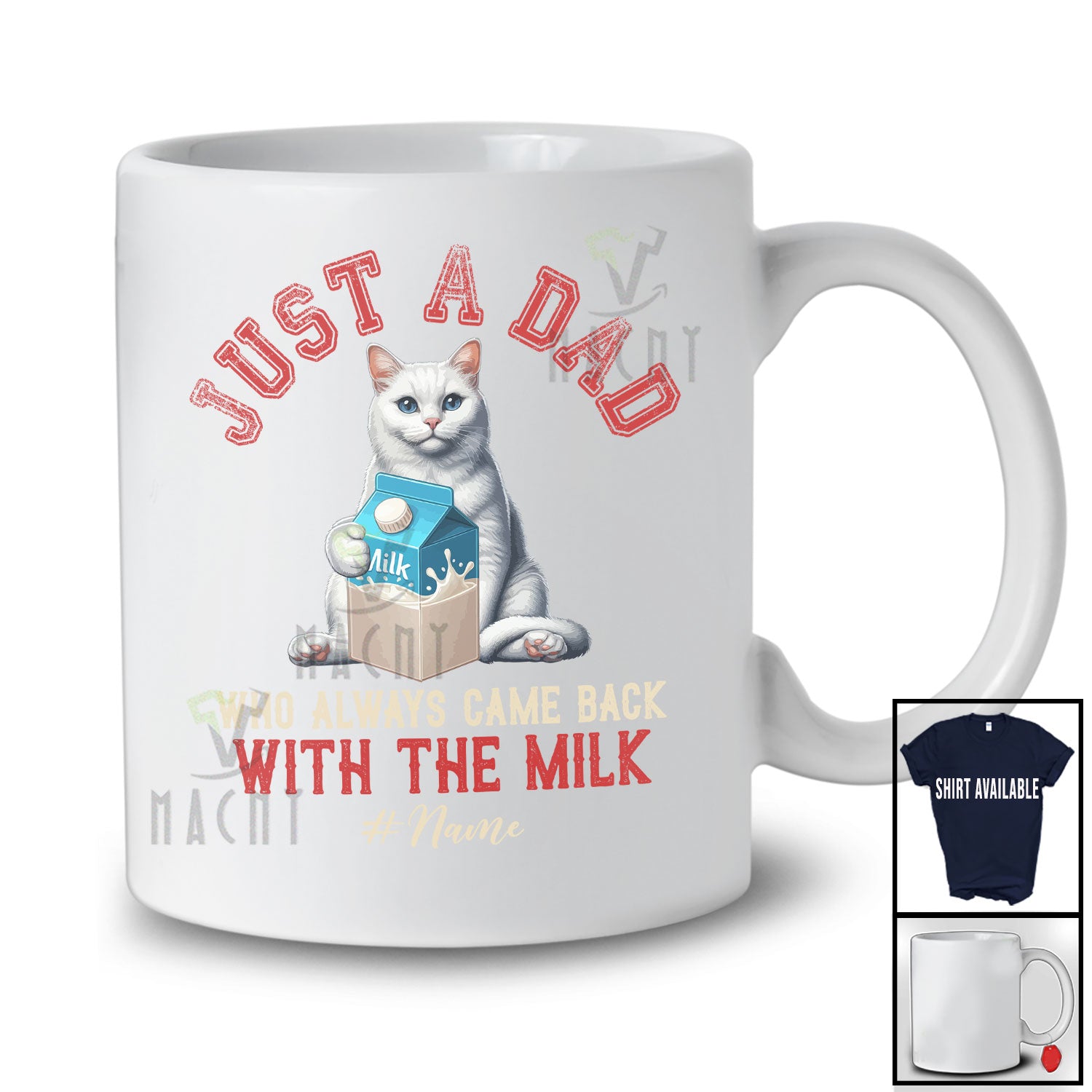 Personalized Custom Name Dad Came Back With The Milk; Lovely Father's Day Cat Owner T-Shirt. This cotton t-shirt is a durable staple product with a classic fit. One of the most popular items, it has a relaxed style made for everyday and casual wear.