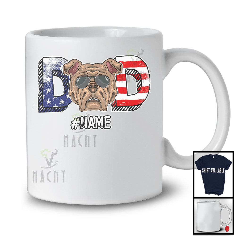 Personalized Custom Name Dad, Lovely 4th Of July Father's Day Pit Bull, Patriotic Family T-Shirt