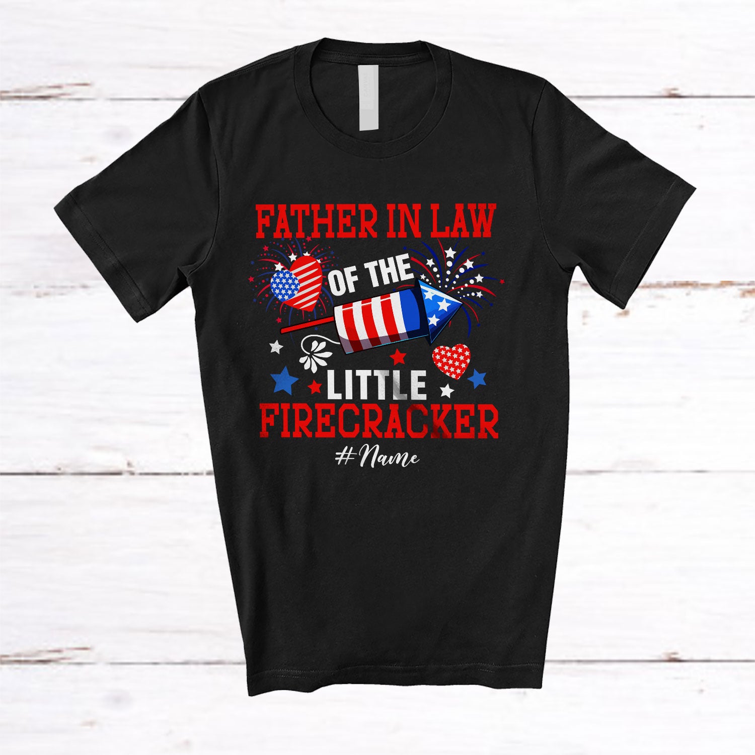 Personalized Custom Name Father in law Of The Little Firecracker; Lovely 4th Of July Family Patriotic T-Shirt