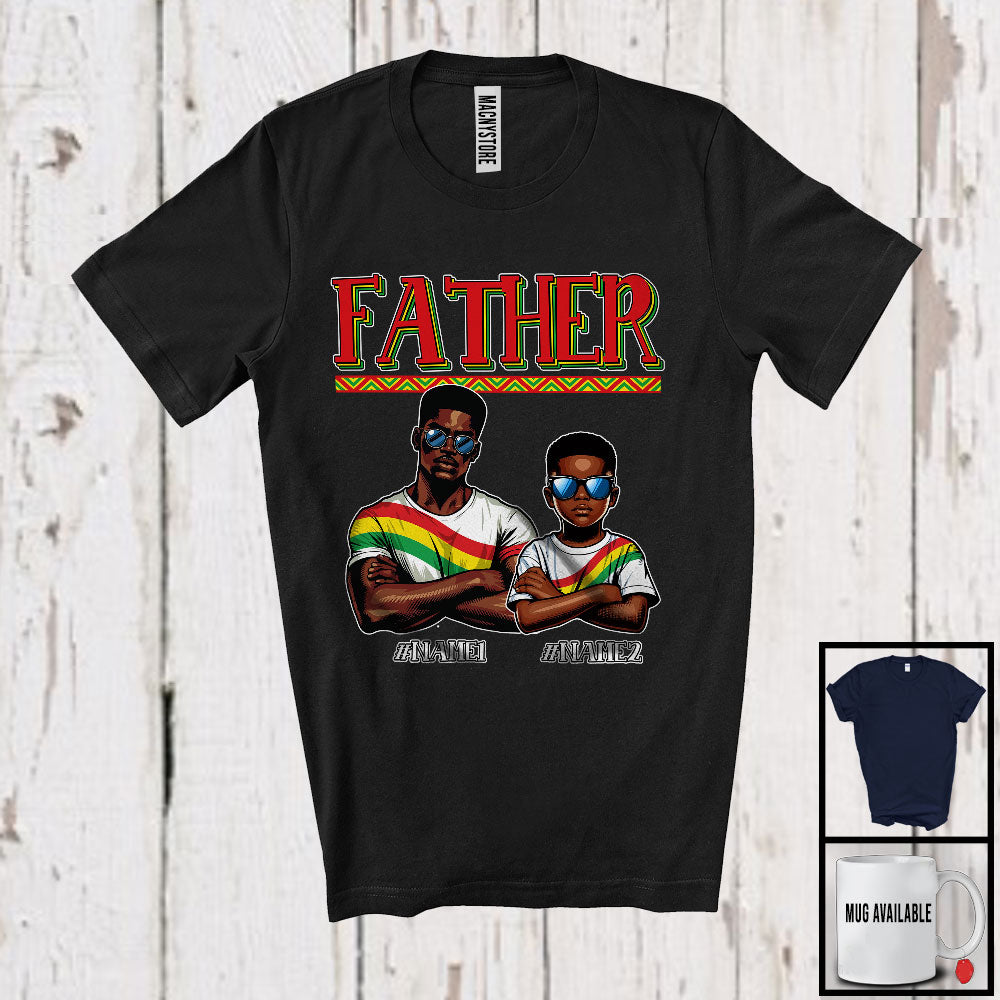 Personalized Custom Name Father Son, Proud Father's Day Juneteenth Black, Afro Family T-Shirt