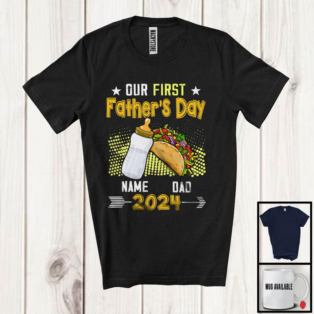 Personalized Custom Name Our First Father's Day, Humorous Taco Milk Bottle 2024, Cheers Family T-Shirt