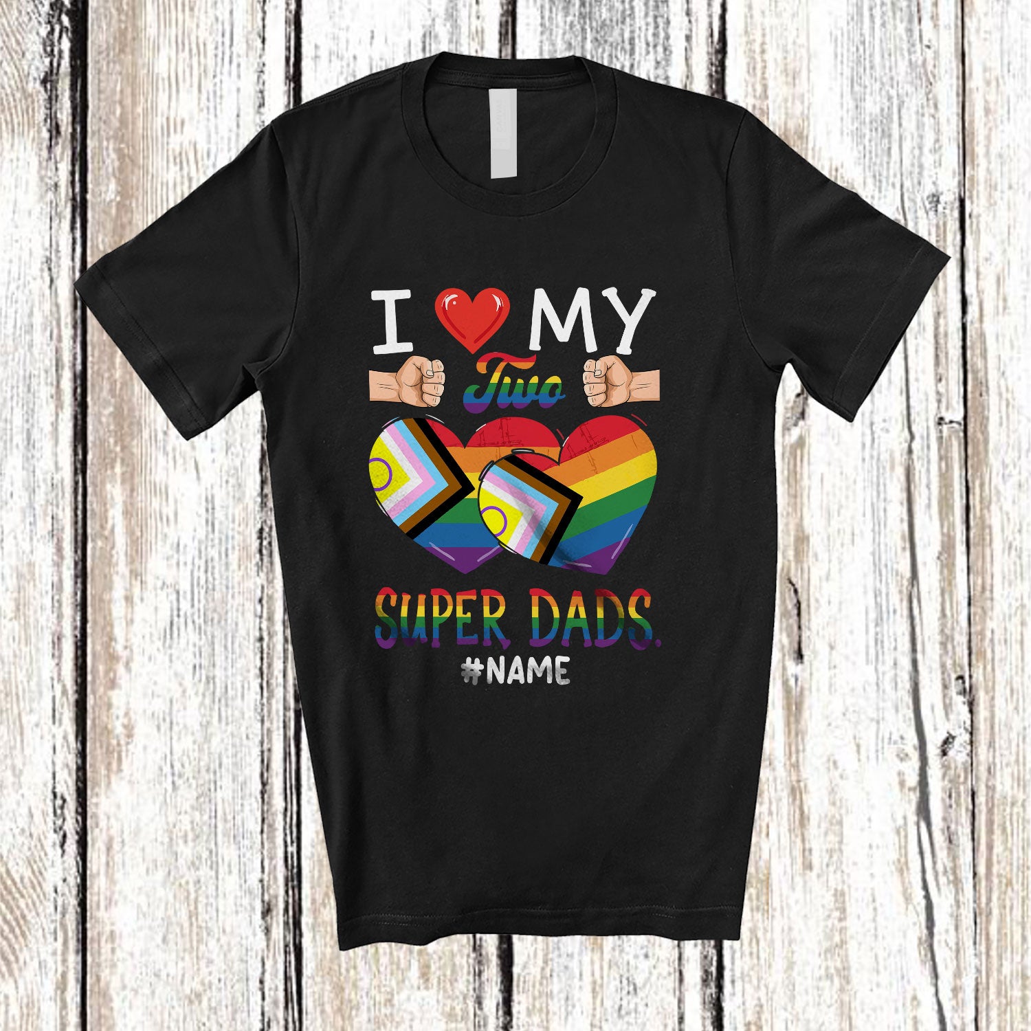 Personalized Love My Two Super Dads; Amazing Father's Day LGBTQ Custom Name Gay Hearts T-Shirt