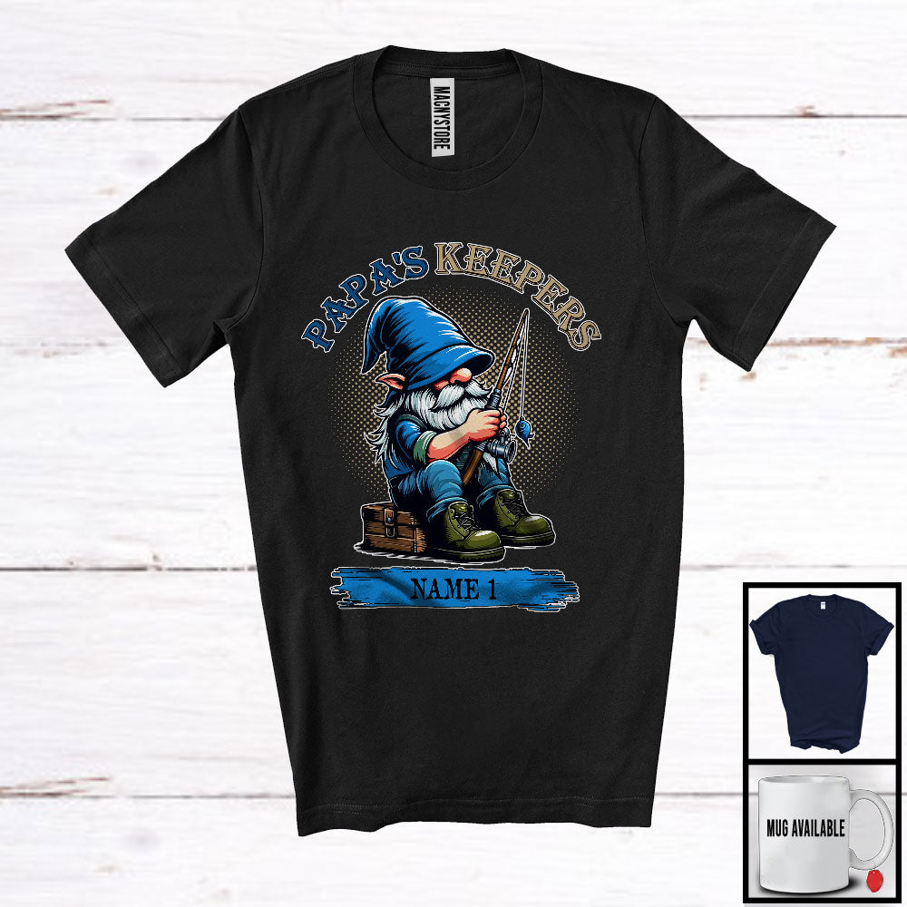 Personalized Papa's Keepers, Lovely Father's Day Fishing Gnome, Custom Name Family T-Shirt