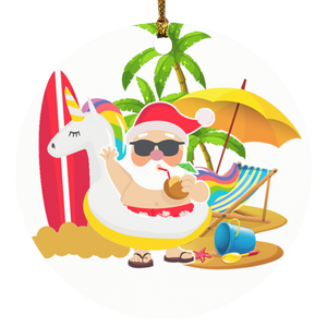 The Santa Claus Relaxing in Hawaii Beach SMART OBJECT SUBORNC Circle Ornament is the product you didn't think you need, but once you have it, something you won't want to live without.
