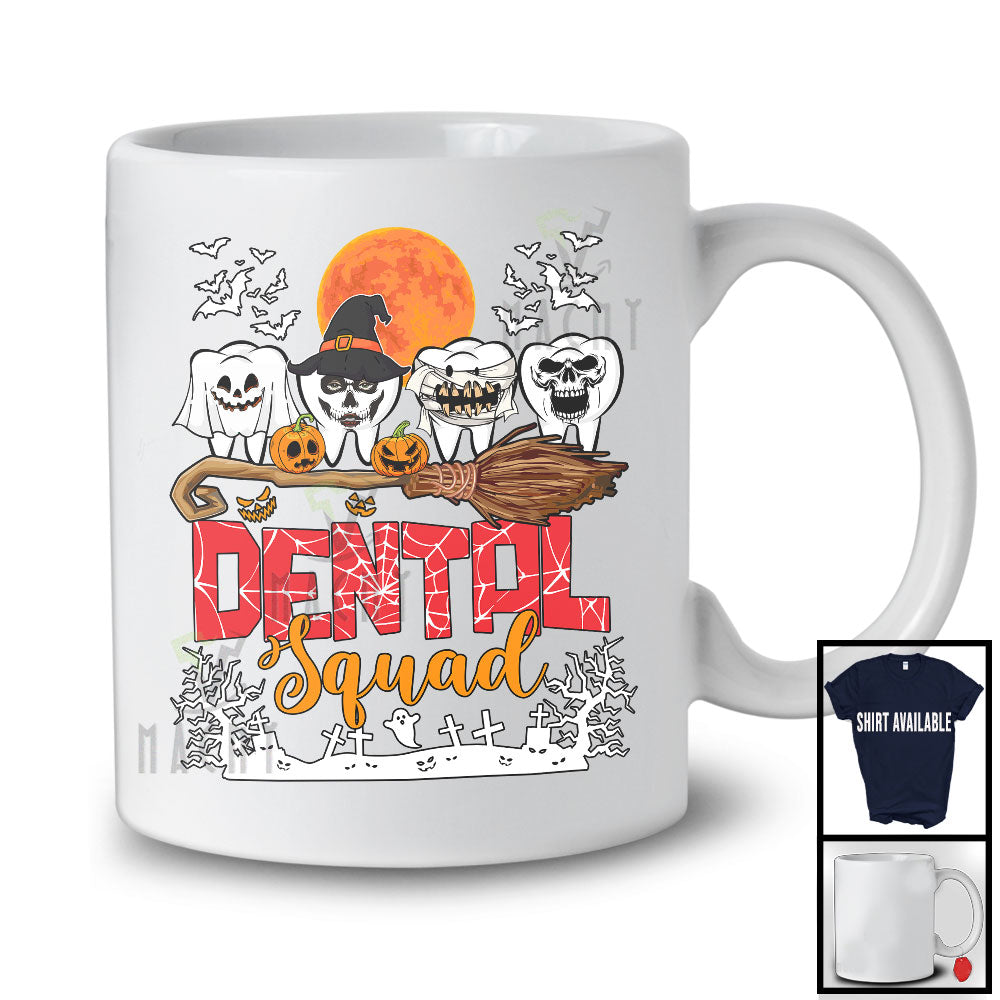 This Dental Squad; Horror Halloween Moon Boo Ghost Witch Tooth; Hygienist Dentist Group T-Shirt is great idea gift for your family, friends in this birthday, christmas, mother's day, father's day, patrick's day or any holiday.
