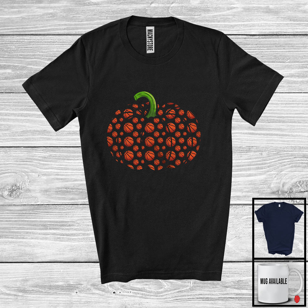 Fall Autumn Pumpkin Shape Basketball; Lovely Thanksgiving Halloween Basketball Player Team T-Shirt. This cotton t-shirt is a durable staple product with a classic fit. One of the most popular items, it has a relaxed style made for everyday and casual wear.
