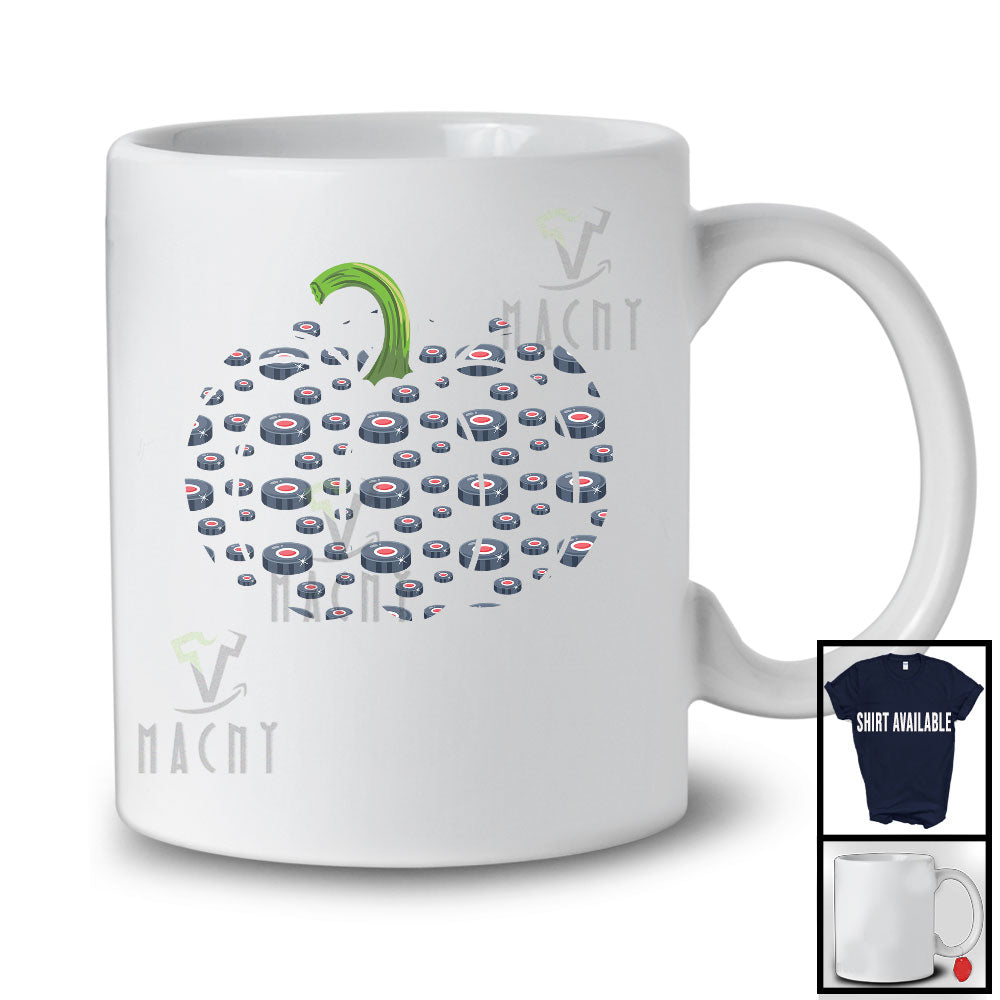new MacnyStore - Fall Autumn Pumpkin Shape Ice Hockey; Lovely Thanksgiving Halloween Ice Hockey Player Team T-Shirt – Macnystore