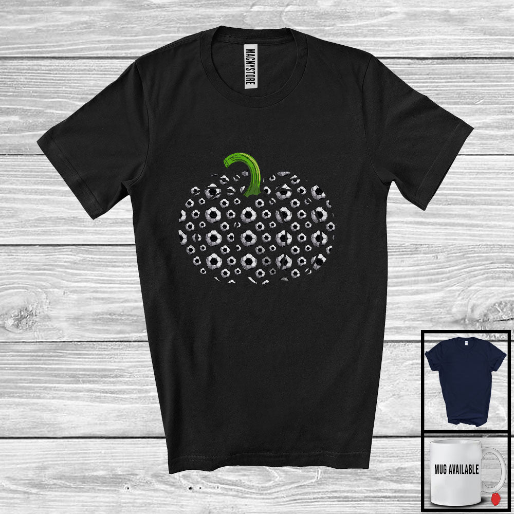 Fall Autumn Pumpkin Shape Soccer; Lovely Thanksgiving Halloween Soccer Player Team T-Shirt. This cotton t-shirt is a durable staple product with a classic fit. One of the most popular items, it has a relaxed style made for everyday and casual wear.
