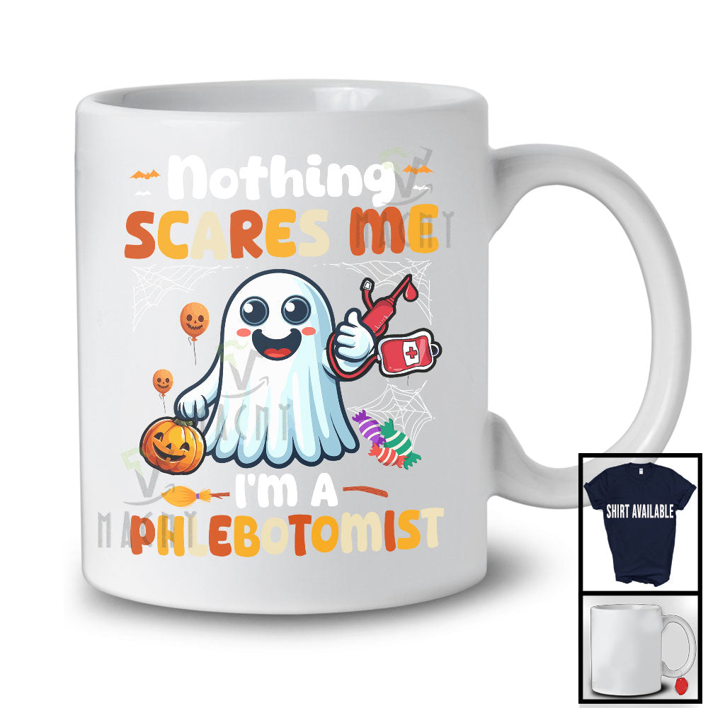 Nothing Scares Me I'm A Phlebotomist; Adorable Halloween Costume Boo Ghost; Family Group T-Shirt. This cotton t-shirt is a durable staple product with a classic fit. One of the most popular items, it has a relaxed style made for everyday and casual wear.