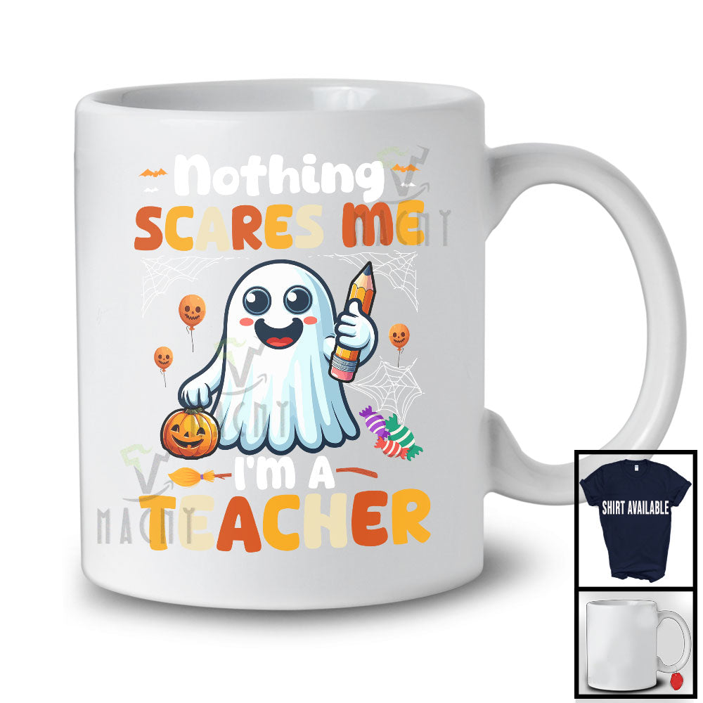 Nothing Scares Me I'm A Teacher; Adorable Halloween Costume Boo Ghost; Family Group T-Shirt. This cotton t-shirt is a durable staple product with a classic fit. One of the most popular items, it has a relaxed style made for everyday and casual wear.