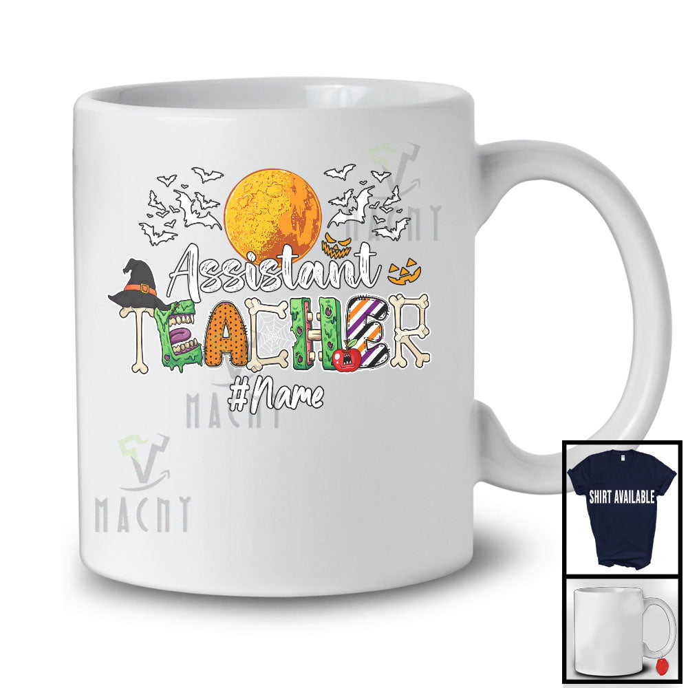 new MacnyStore - Personalized Custom Name Assistant Teacher; Creepy Halloween Moon Witch Zombie; Jobs T-Shirt – Macnystore