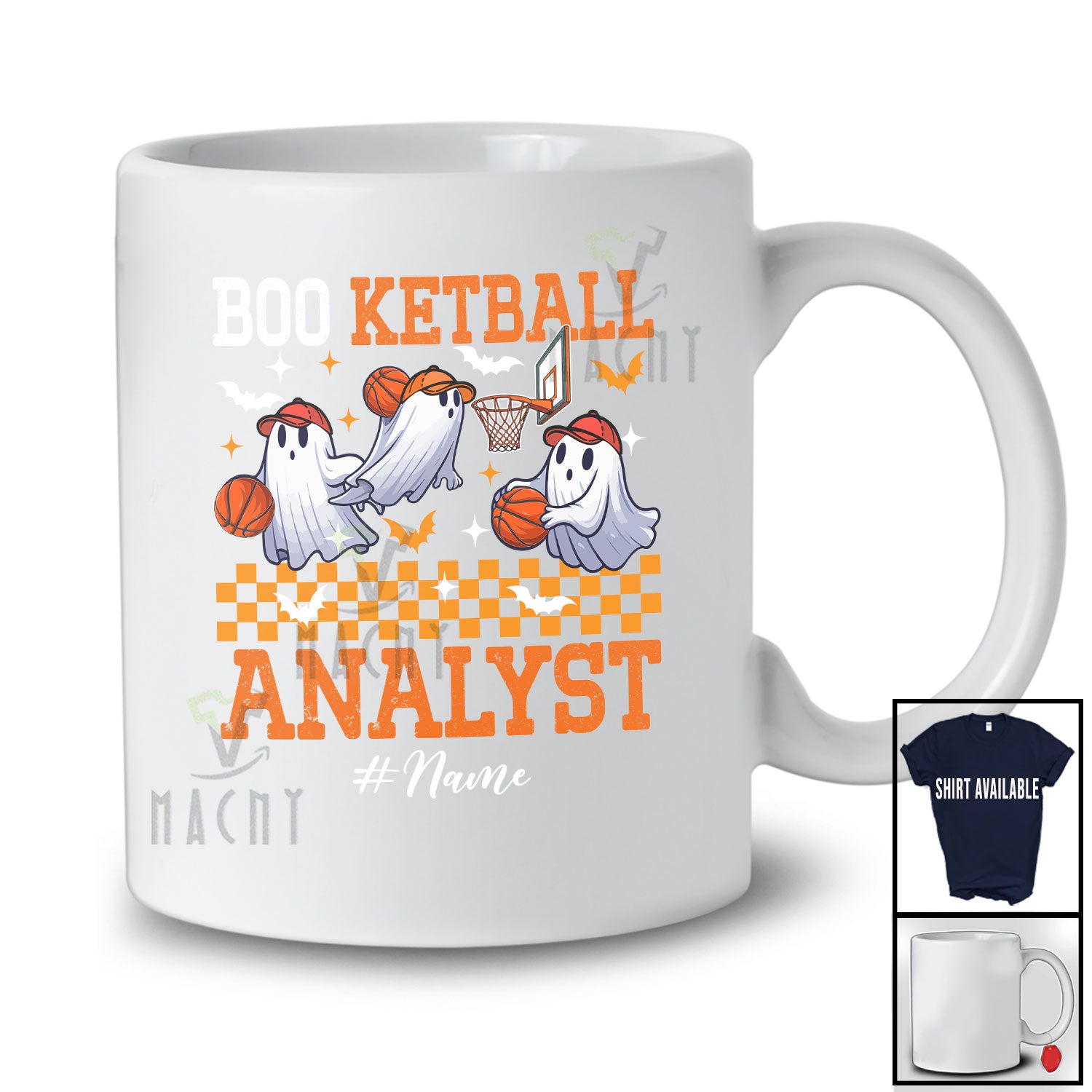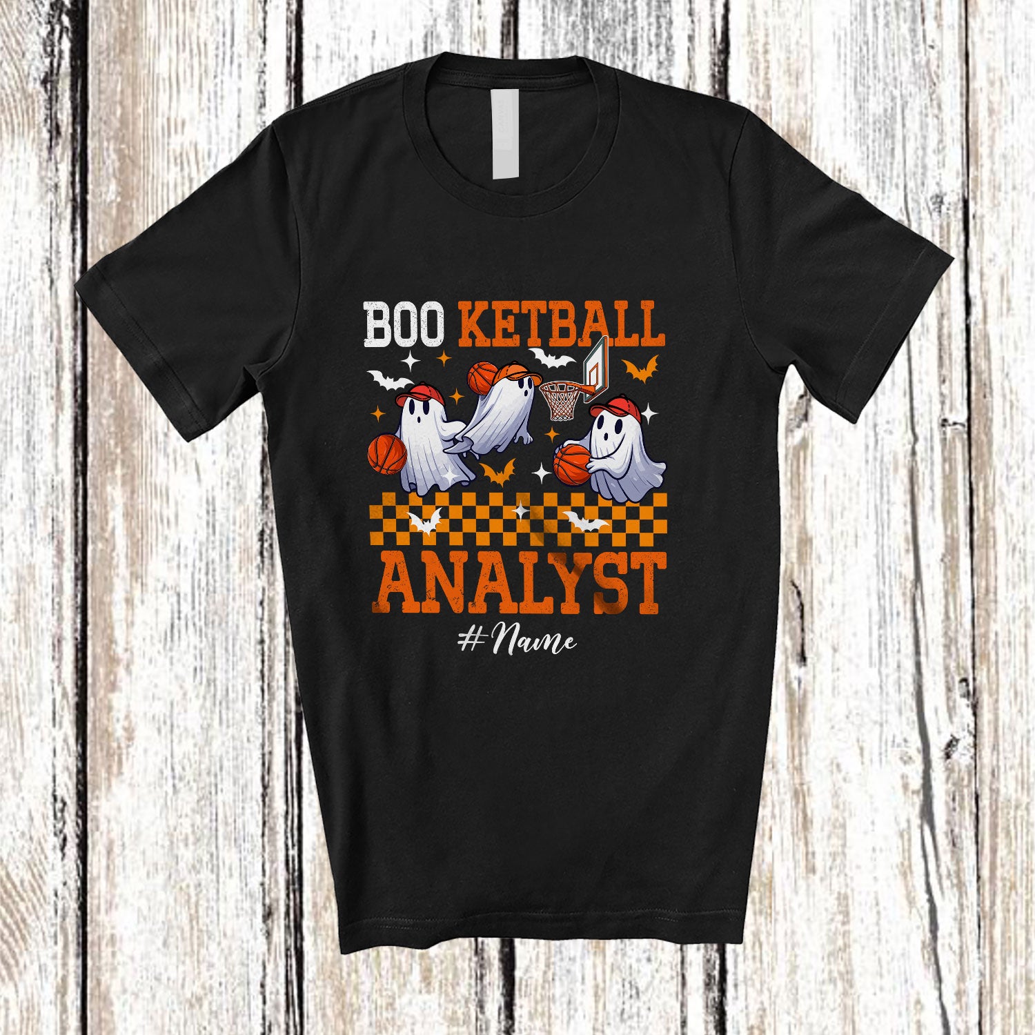 Personalized Custom Name Boo Ketball Analyst; Lovely Halloween Ghost Basketball Sport Player T-Shirt. This cotton t-shirt is a durable staple product with a classic fit. One of the most popular items, it has a relaxed style made for everyday and casual wear.