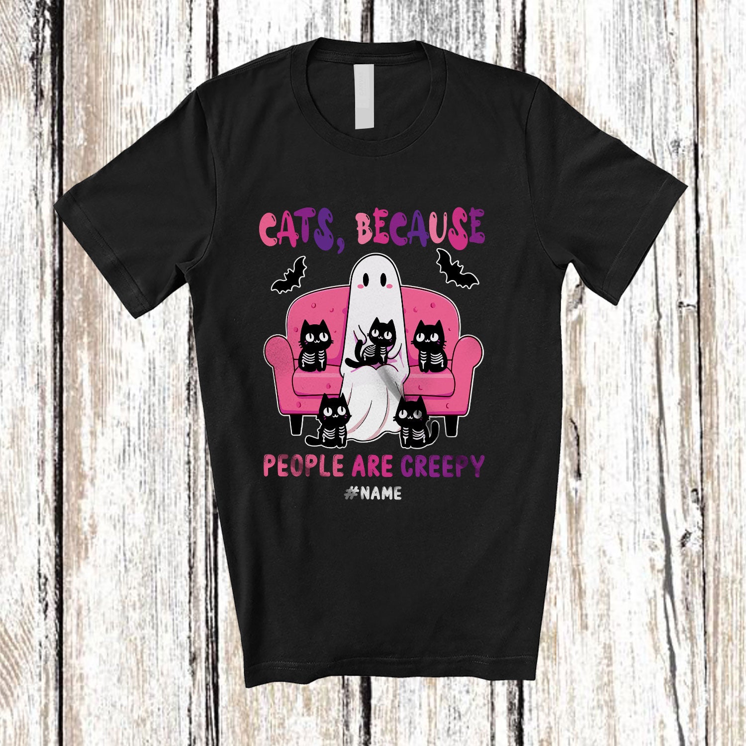 This Personalized Custom Name Cats Because People Creepy; Lovely Halloween Ghost Boo Owner T-Shirt is great idea gift for your family, friends in this birthday, christmas, mother's day, father's day, patrick's day or any holiday.