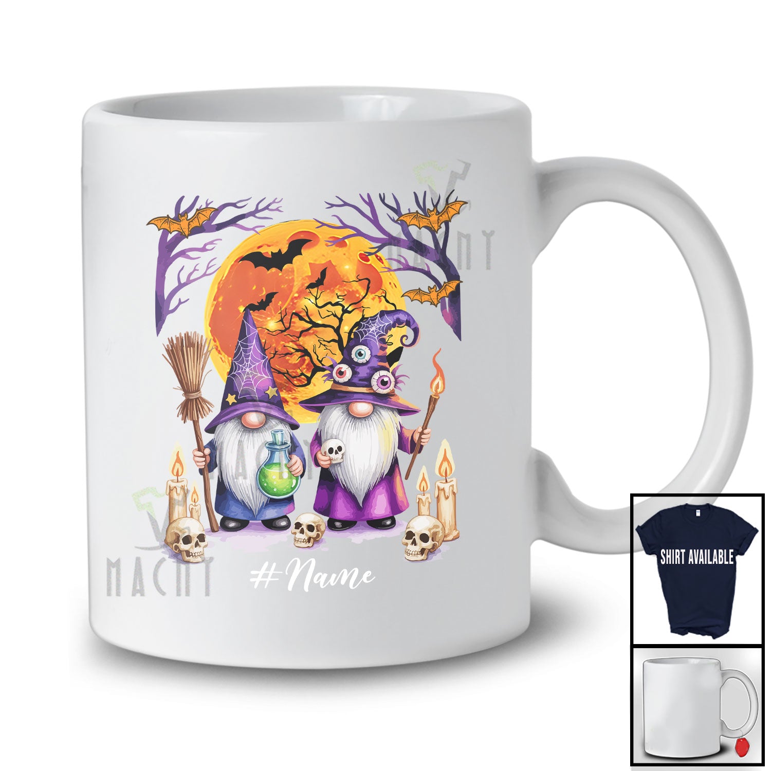 The Personalized Custom Name Couple Witch Gnomes; Scary Halloween Moon Gnomies; Family T-Shirt is far and away, one of our most popular items. People can't seem to get enough of it.