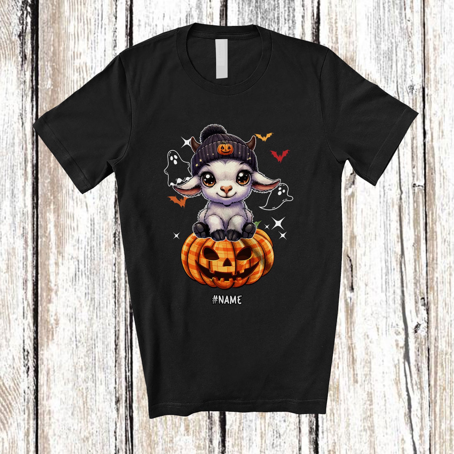 Personalized Custom Name Cute Goat On Plaid Pumpkin; Adorable Halloween Goat Farmer T-Shirt