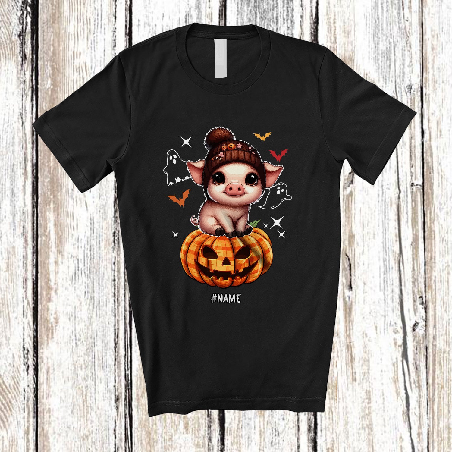 Personalized Custom Name Cute Pig On Plaid Pumpkin; Adorable Halloween Pig Farmer T-Shirt