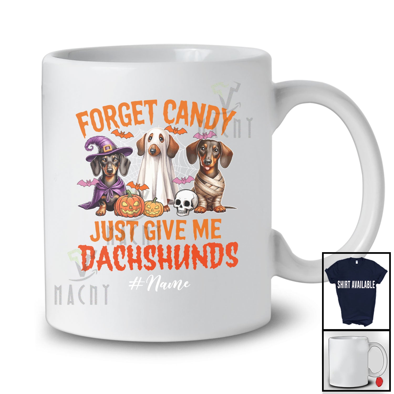 This Personalized Custom Name Forget Candy Give Me Dachshunds; Lovely Halloween Family Group T-Shirt is great idea gift for your family, friends in this birthday, christmas, mother's day, father's day, patrick's day or any holiday.