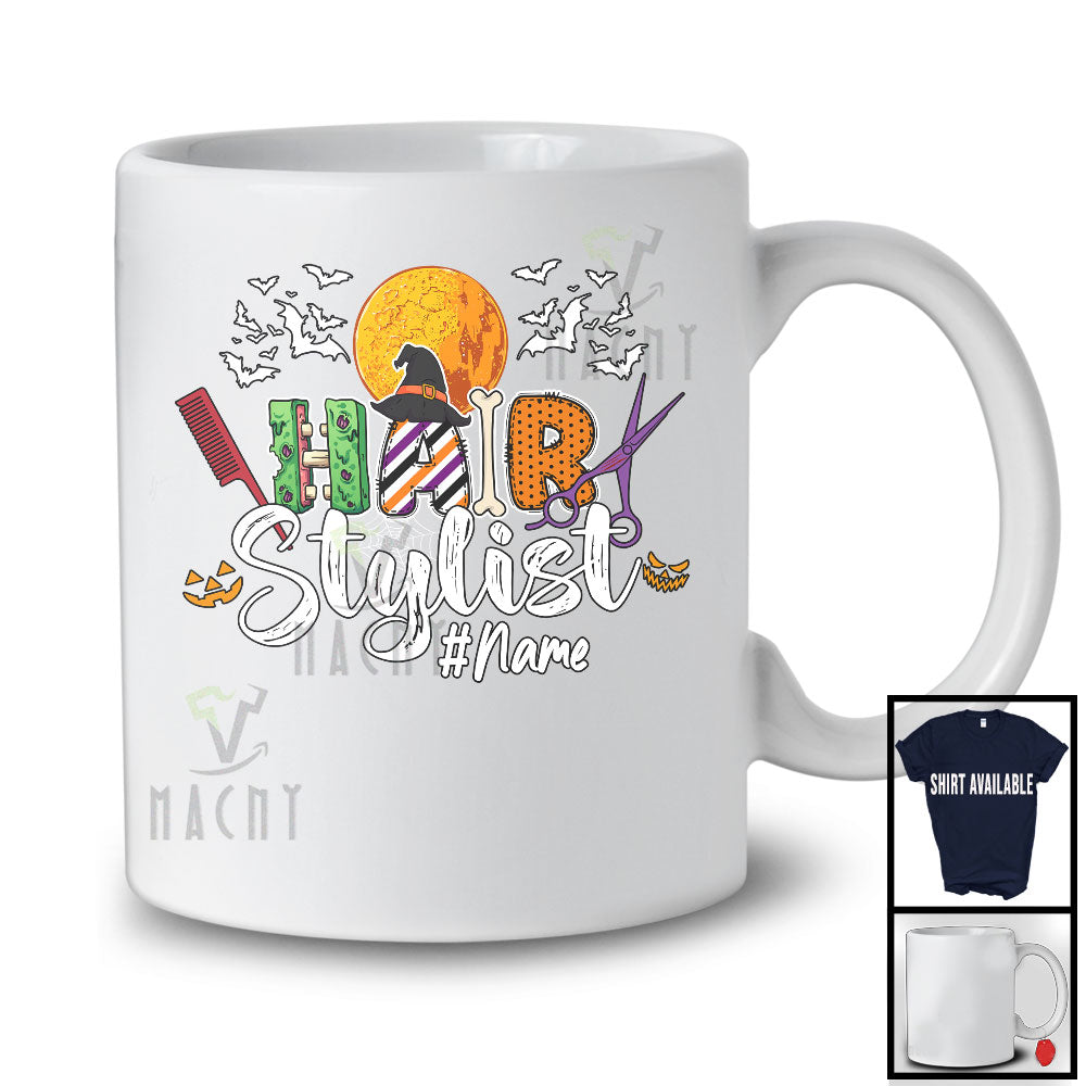 • Personalized Custom Name Hair Stylist; Creepy Halloween Moon Witch Zombie; Jobs Careers T-Shirt. This cotton t-shirt is a durable staple product with a classic fit. One of the most popular items, it has a relaxed style made for everyday and casual wear.