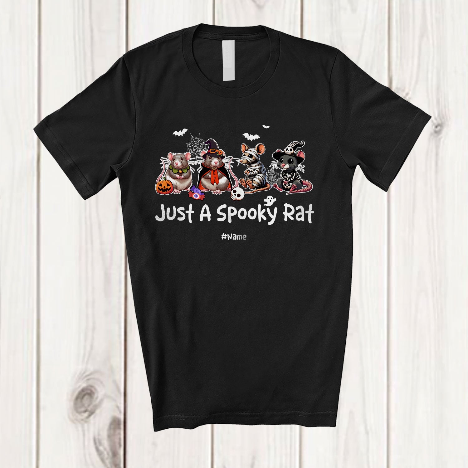 Personalized Custom Name Just A Spooky Rat; Horror Halloween Witch Skeleton Rat Animal T-Shirt. This cotton t-shirt is a durable staple product with a classic fit. One of the most popular items, it has a relaxed style made for everyday and casual wear.