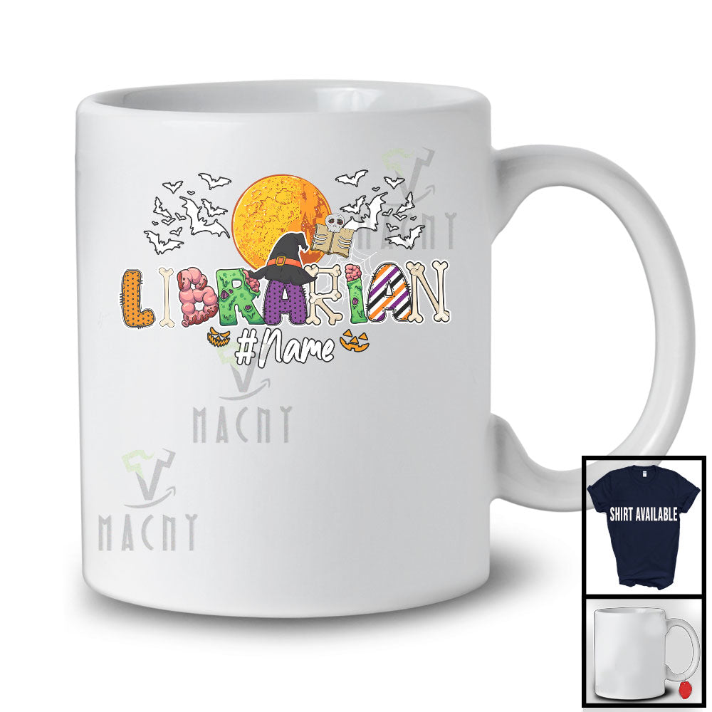 new MacnyStore - Personalized Custom Name Librarian; Creepy Halloween Moon Witch Zombie; Jobs Careers T-Shirt – Macnystore