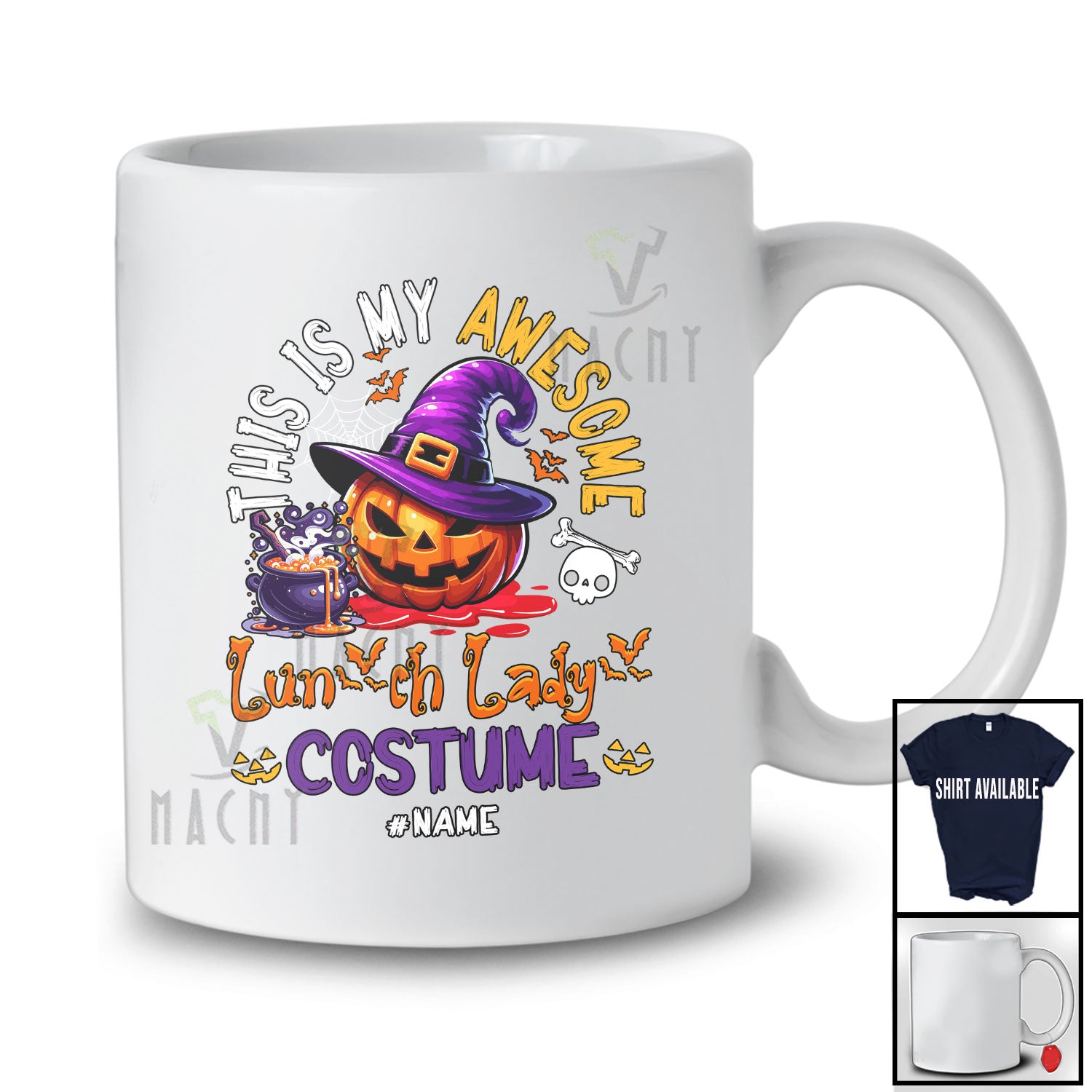 Personalized Custom Name My Awesome Lunch Lady Costume; Scary Halloween Pumpkin T-Shirt. This cotton t-shirt is a durable staple product with a classic fit. One of the most popular items, it has a relaxed style made for everyday and casual wear.