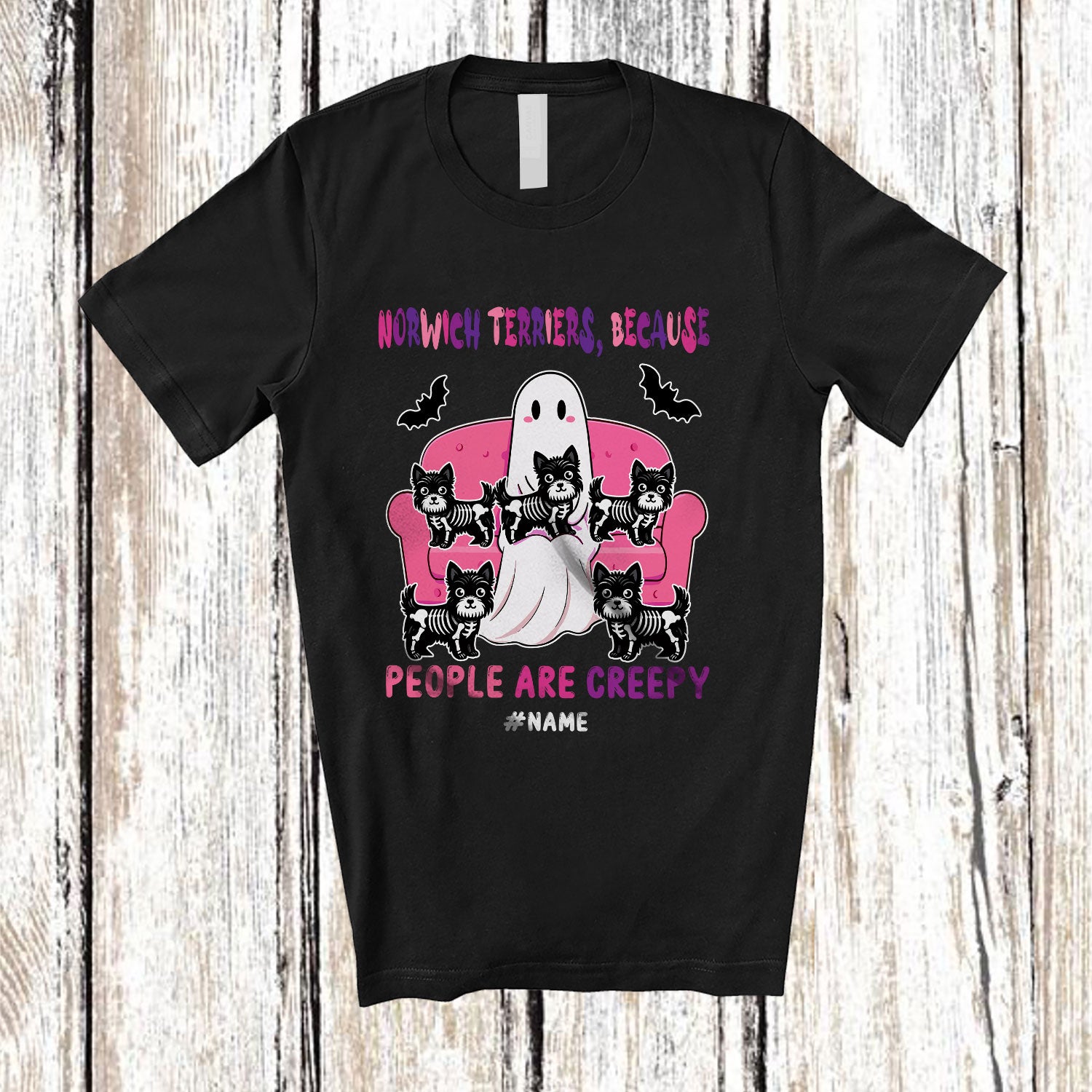 Personalized Custom Name Norwich Terriers Because People Creepy; Lovely Halloween Ghost Boo T-Shirt. This cotton t-shirt is a durable staple product with a classic fit. One of the most popular items, it has a relaxed style made for everyday and casual wear.