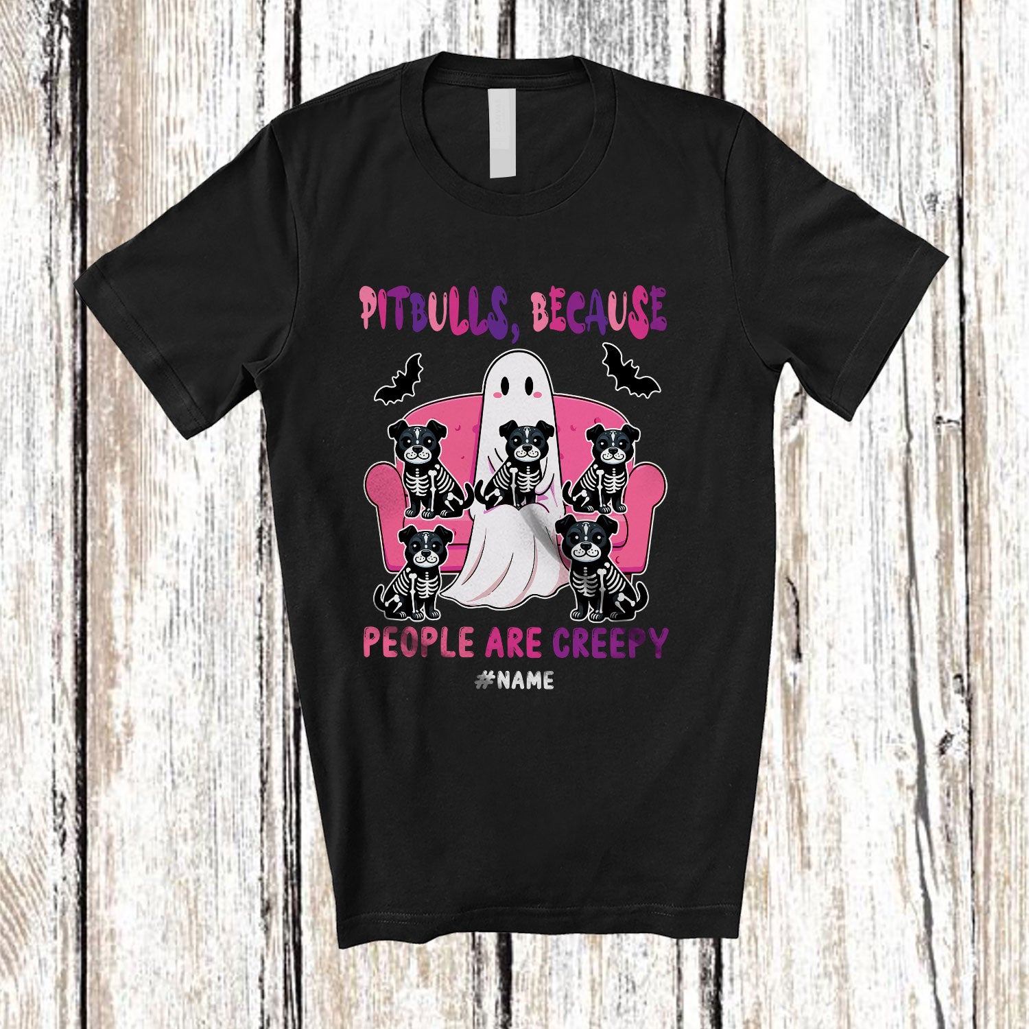 Personalized Custom Name Pit Bulls Because People Creepy; Lovely Halloween Ghost Boo Owner T-Shirt. This cotton t-shirt is a durable staple product with a classic fit. One of the most popular items, it has a relaxed style made for everyday and casual wear.