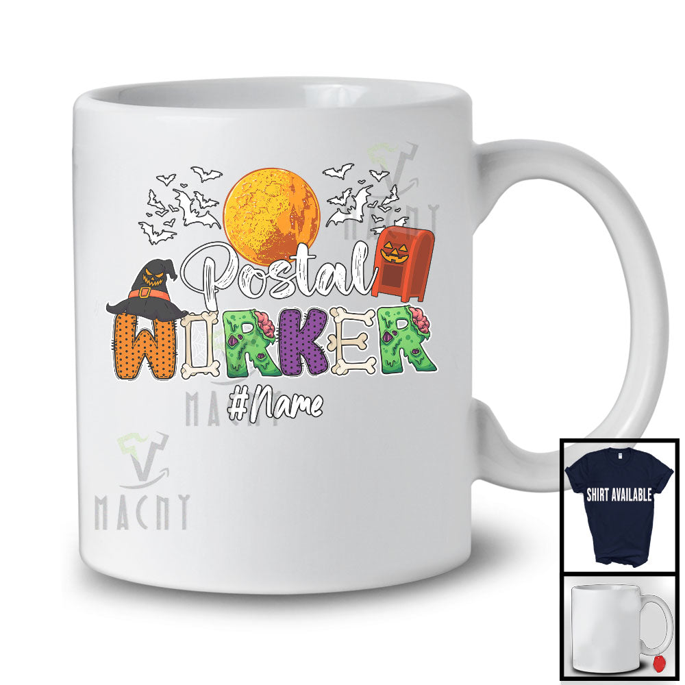 Personalized Custom Name Postal Worker; Creepy Halloween Moon Witch Zombie; Jobs T-Shirt