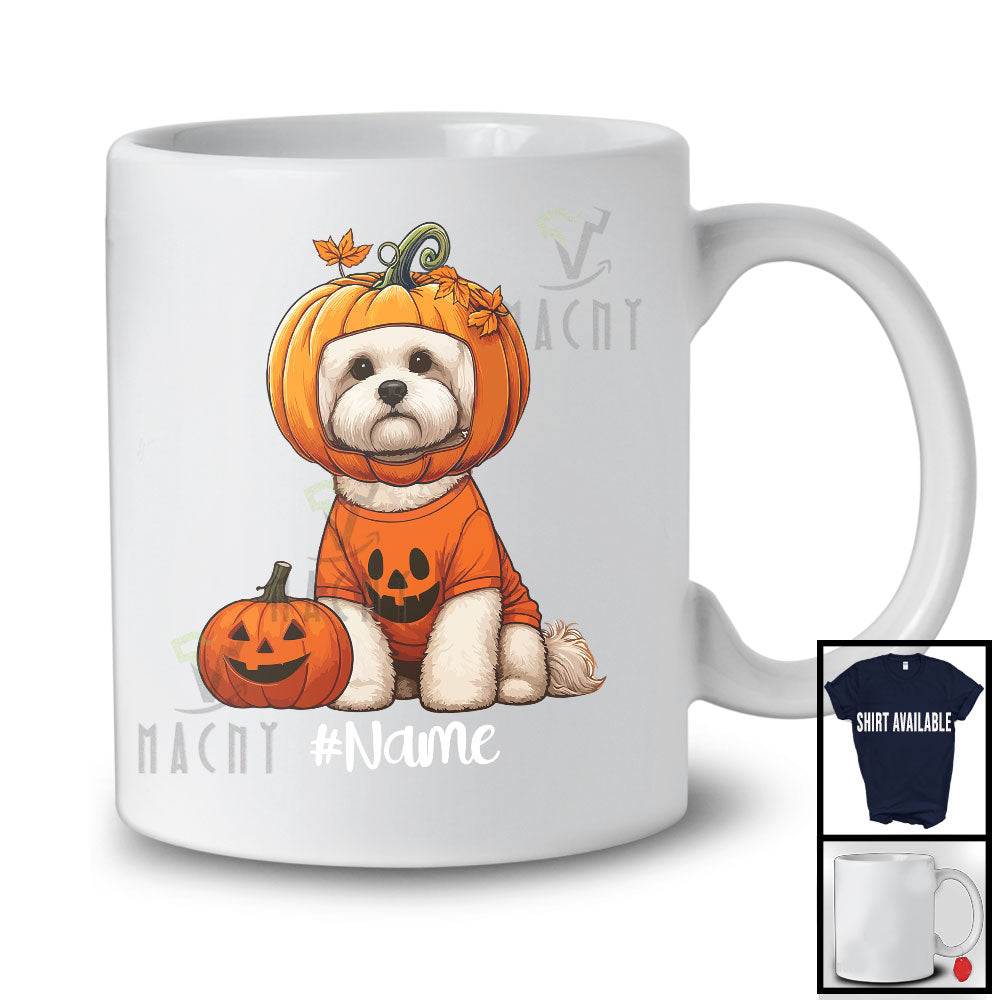 Personalized Custom Name Pumpkin Maltipoo; Humorous Halloween Costume Family T-Shirt