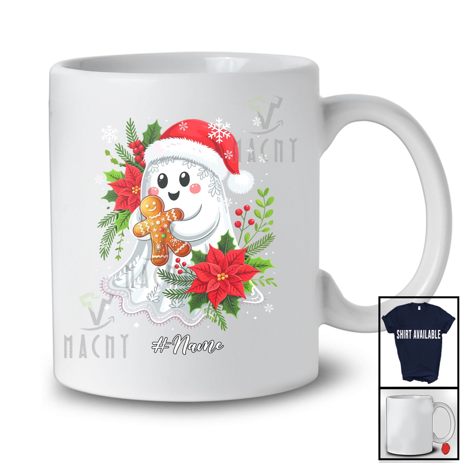 new MacnyStore - Personalized Custom Name Santa Ghost Boo With Gingerbread; Lovely Halloween Christmas Baking Baker T-Shirt – Macnystore