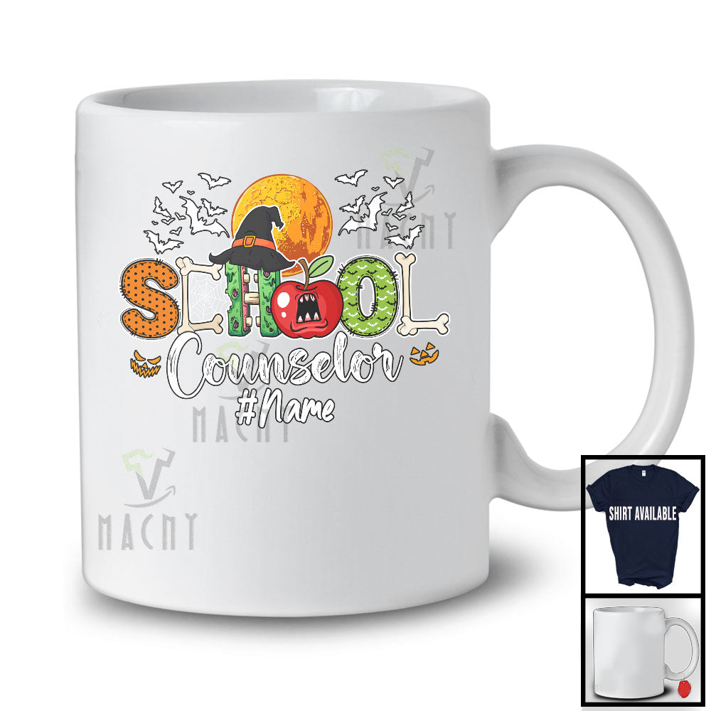 • Personalized Custom Name School Counselor; Creepy Halloween Moon Witch Zombie; Jobs T-Shirt. This cotton t-shirt is a durable staple product with a classic fit. One of the most popular items, it has a relaxed style made for everyday and casual wear.