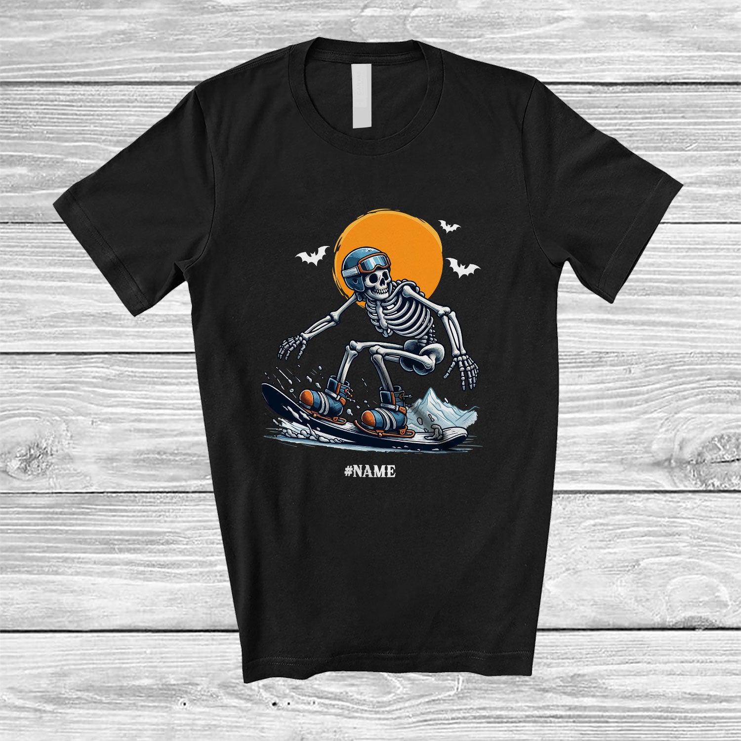 Personalized Custom Name Skeleton Snowboarding; Joyful Halloween Outdoor Activities; Men Family T-Shirt