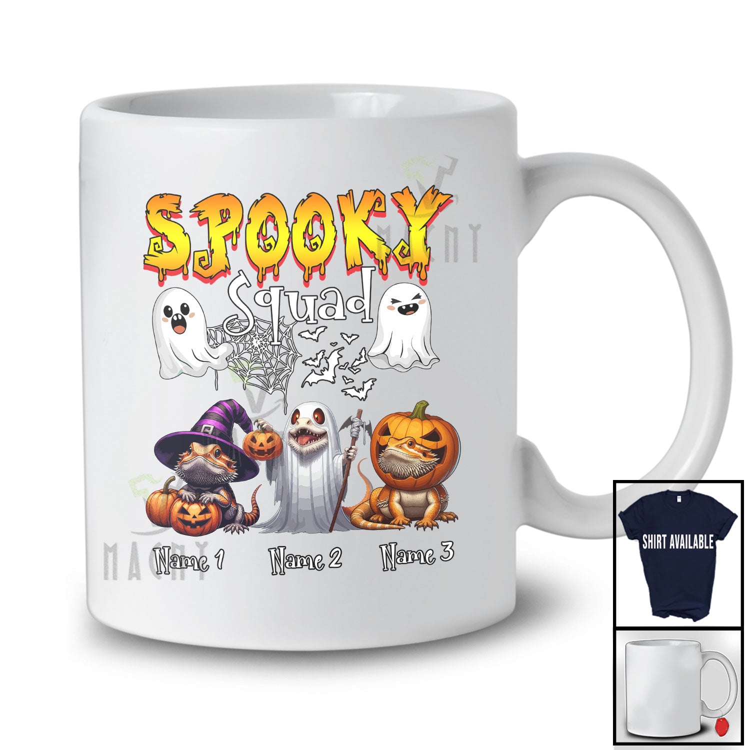 The Personalized Custom Name Spooky Squad; Horror Halloween Three Bearded Dragon Witch Boo Ghost T-Shirt destined to impress, and priced at only $12.95, for a limited time.