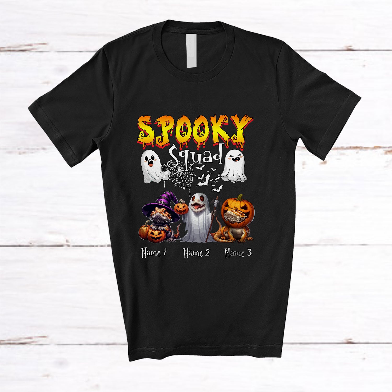 Personalized Custom Name Spooky Squad; Horror Halloween Three Bearded Dragon Witch Boo Ghost T-Shirt
