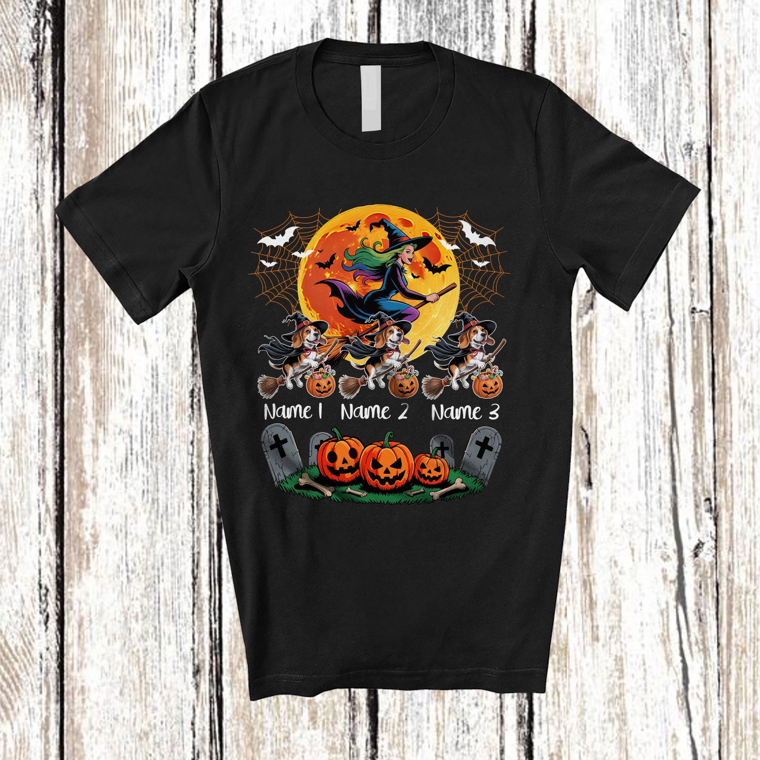 Personalized Custom Name Three Witch Beagle Owner; Creepy Halloween Moon; Family Group T-Shirt