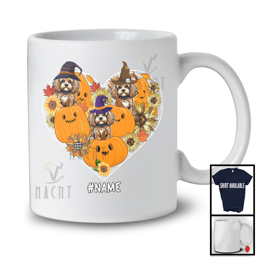 Personalized Custom Name Witch Cockapoo Heart; Happy Halloween Thanksgiving Sunflowers T-Shirt. This cotton t-shirt is a durable staple product with a classic fit. One of the most popular items, it has a relaxed style made for everyday and casual wear.