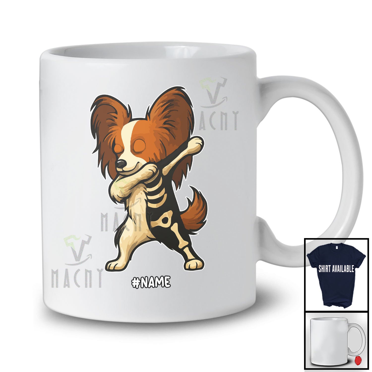 • Personalized Dabbing Papillon Skeleton; Joyful Halloween Custom Name Owner Family Group T-Shirt. This cotton t-shirt is a durable staple product with a classic fit. One of the most popular items, it has a relaxed style made for everyday and casual wear.