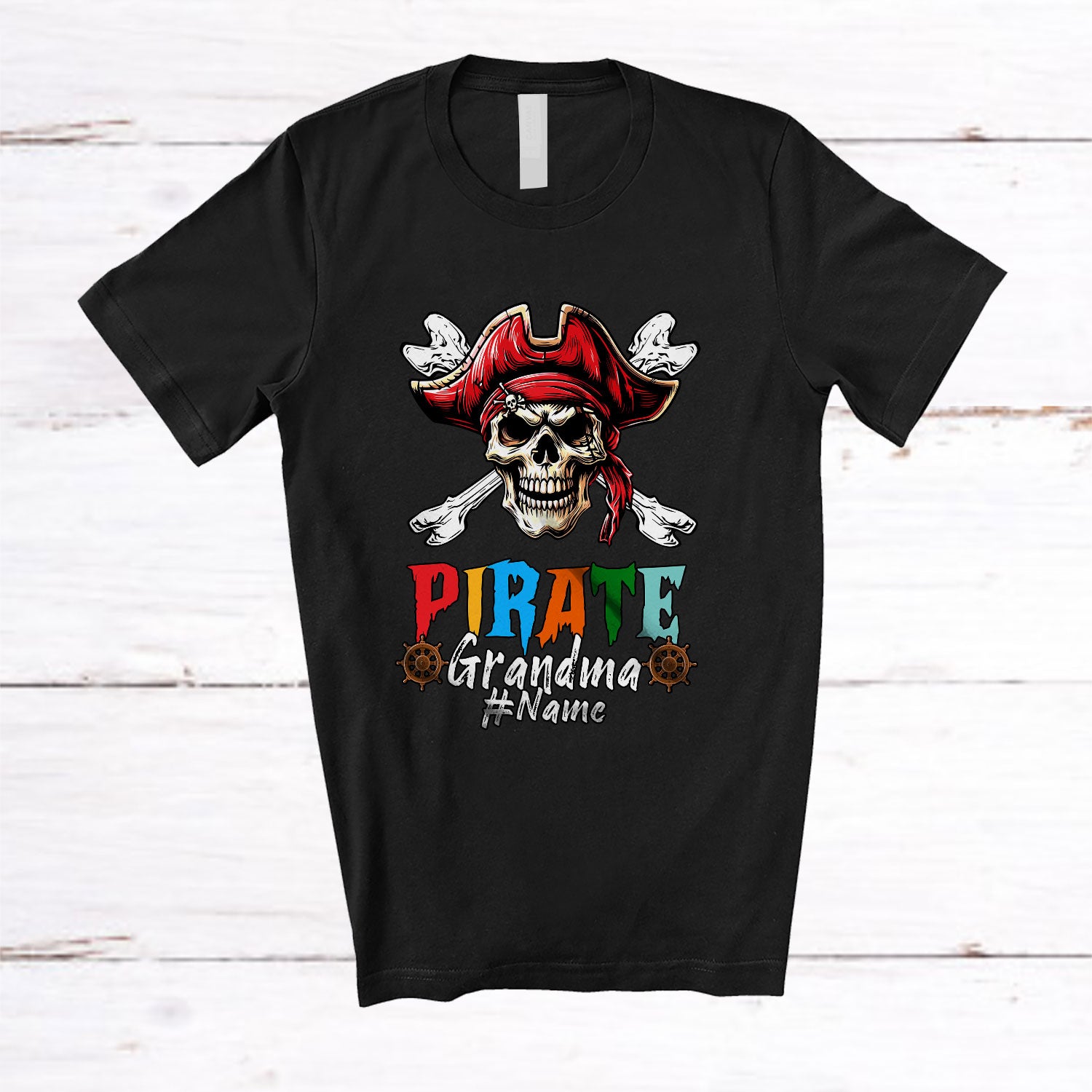 Personalized Pirate Grandma; Humorous Mother's Day Halloween Skull Pirate; Custom Name Family T-Shirt