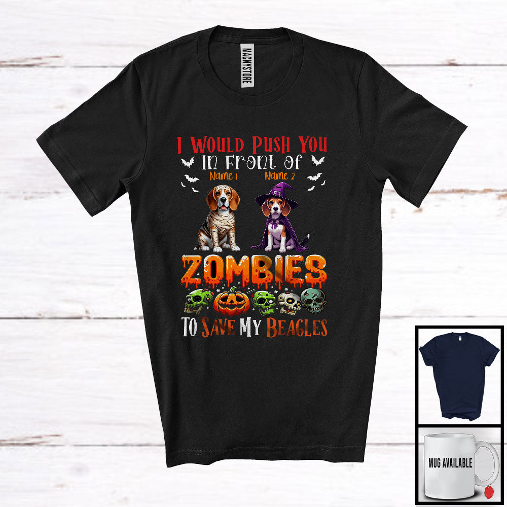 Personalized Push You Front Of Zombies, Scary Halloween Custom Name Beagles Mummy Witch T-Shirt