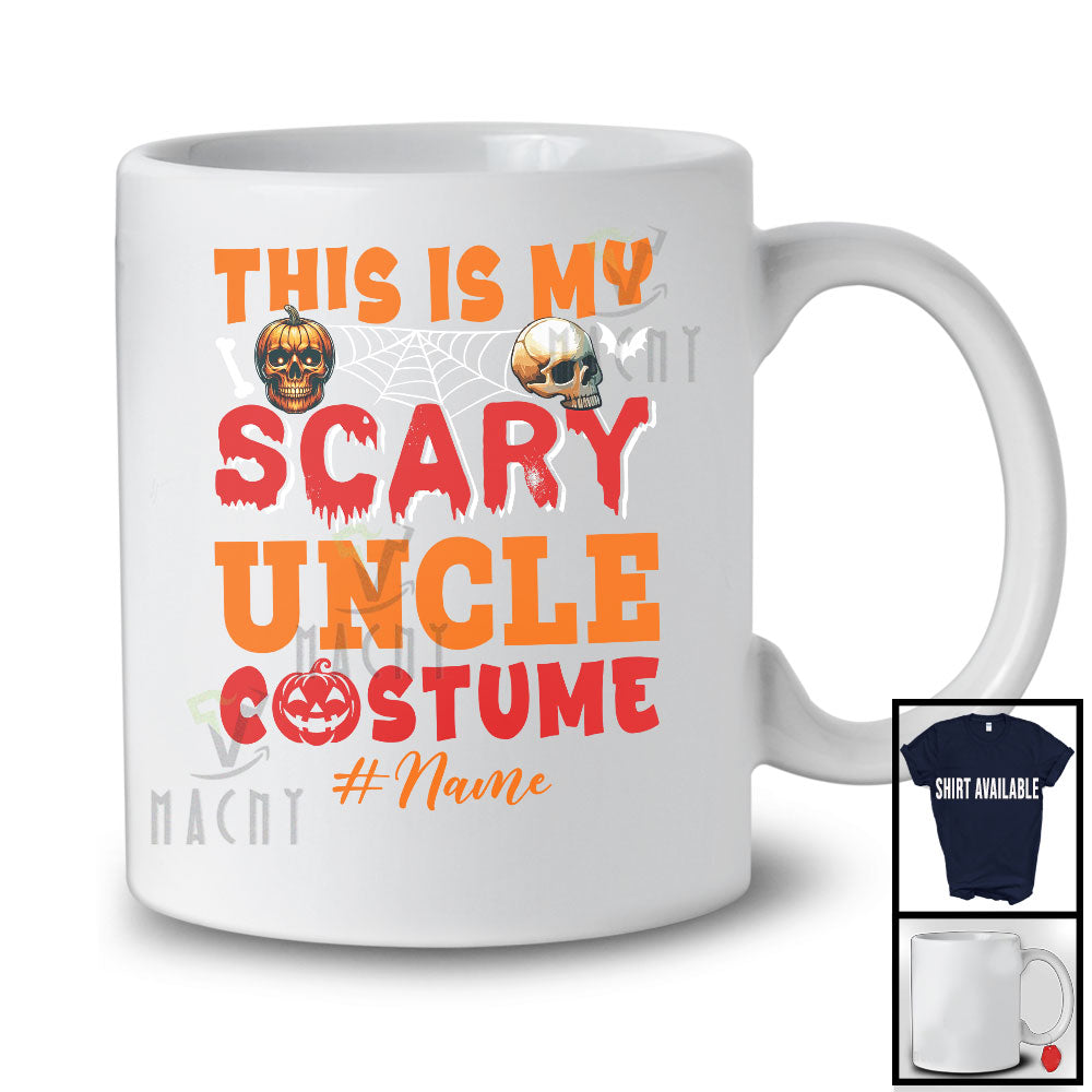 Personalized This Is My Scary Uncle Costume; Creepy Halloween Custom Name Family Group T-Shirt. This cotton t-shirt is a durable staple product with a classic fit. One of the most popular items, it has a relaxed style made for everyday and casual wear.