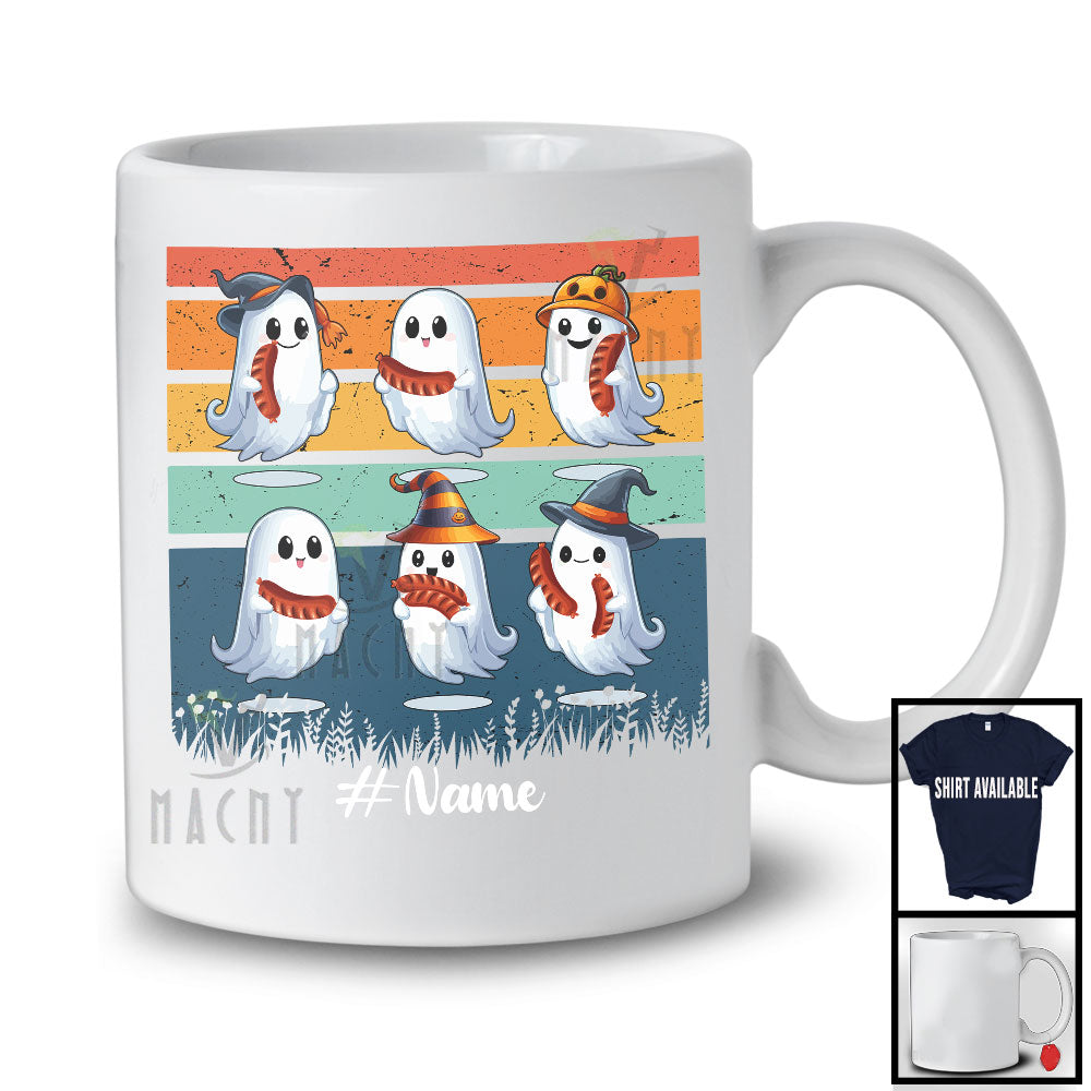 The Personalized Vintage Retro Boo Ghost Eating Sausage; Cute Halloween Custom Name Food T-Shirt destined to impress, and priced at only $12.95, for a limited time.