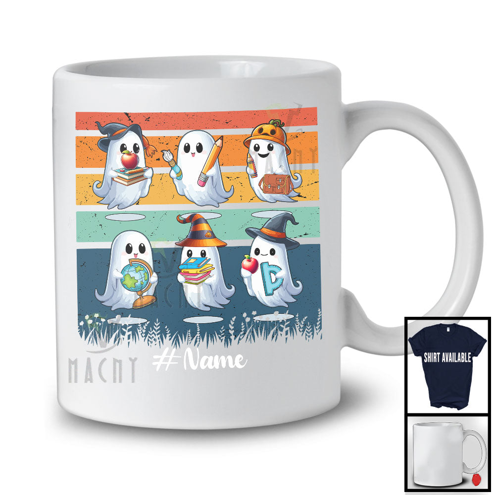 Personalized Vintage Retro Boo Ghost Teaching; Cute Halloween Custom Name Teacher T-Shirt