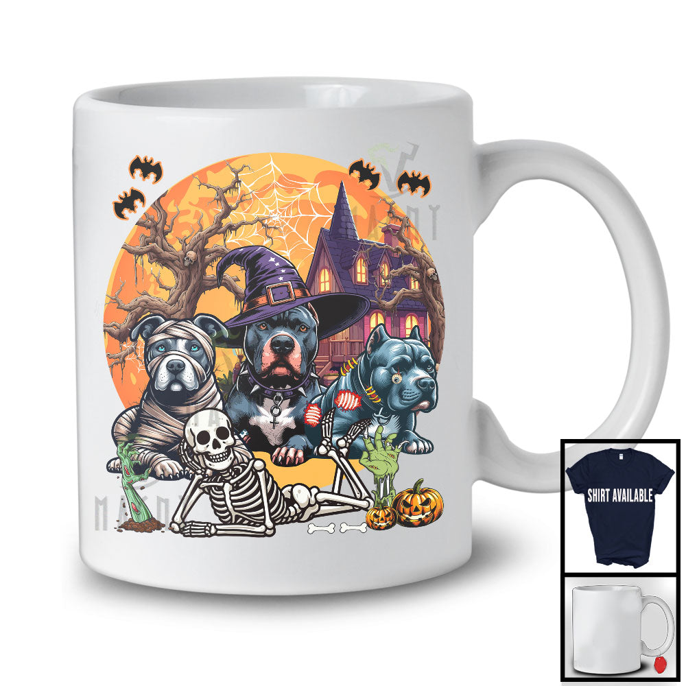new MacnyStore - Three Mummy Witch Zombie Pit Bull, Scary Halloween Moon Pit Bull Owner Lover, Lying Skeleton T-Shirt – Macnystore