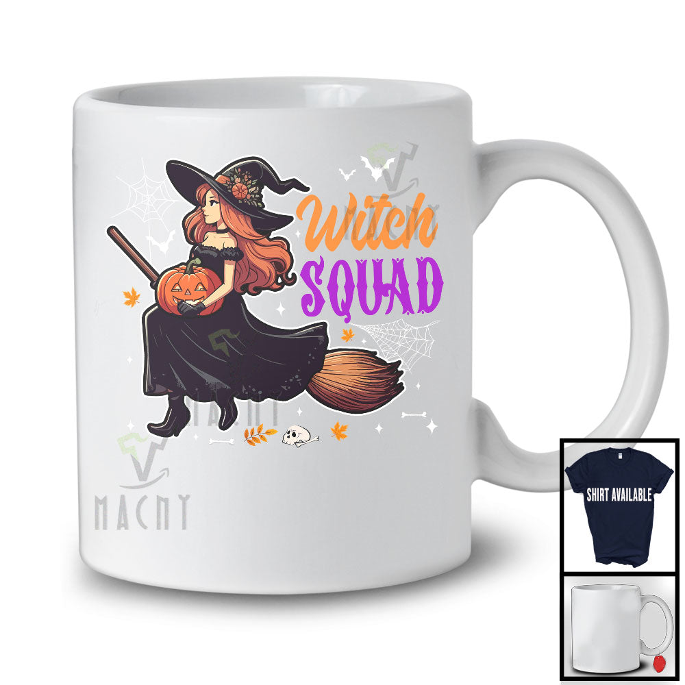 Witch Squad, Lovely Halloween Costume Witch Broomstick With Carved Pumpkin, Family Group T-Shirt. This cotton t-shirt is a durable staple product with a classic fit. One of the most popular items, it has a relaxed style made for everyday and casual wear.