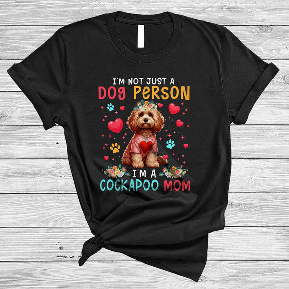 Not Just A Dog Person I'm A Cockapoo Mom, Lovely Valentine Flowers, Hearts Floral Animal Lover T-Shirt