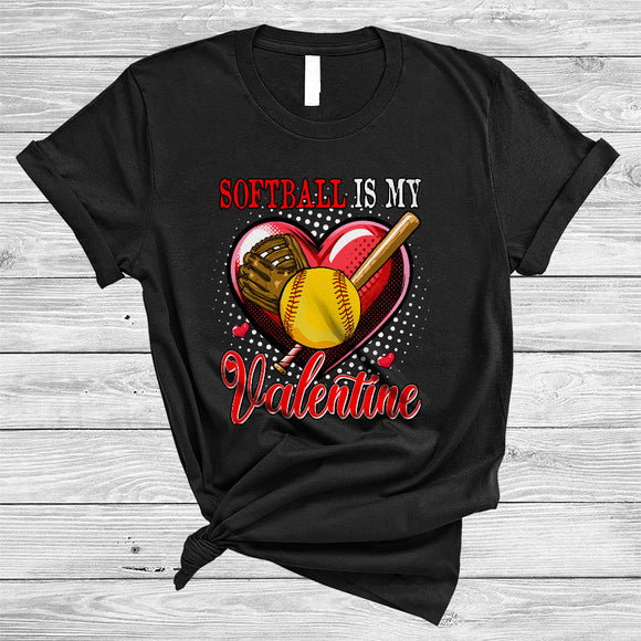 Softball Is My Valentine, Joyful Valentine's Day Softball Player, Heart Shape Matching Sport Team T-Shirt