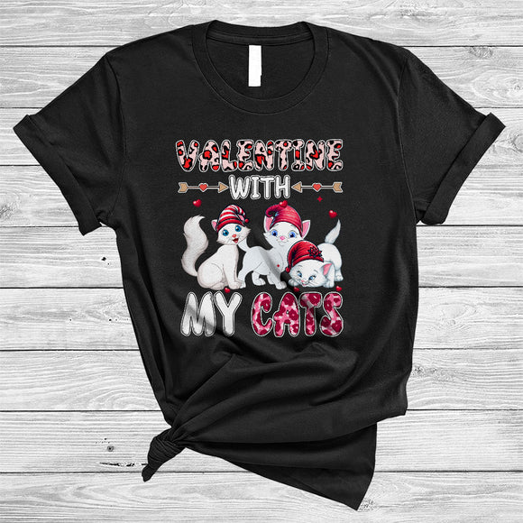 Valentine With My Cats, Lovely Valentine's Day Three Kittens Animal, Leopard Pink Hearts T-Shirt