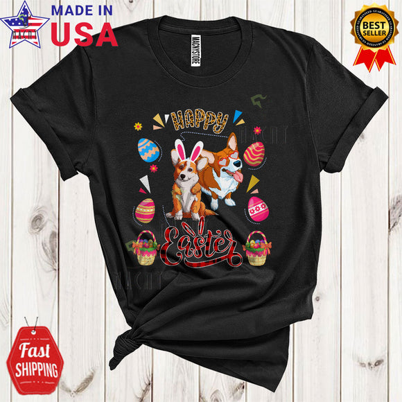 Happy Easter Cute Funny Easter Day Leopard Plaid Eggs Hunt Couple Bunny Corgi Dog Lover T-Shirt
